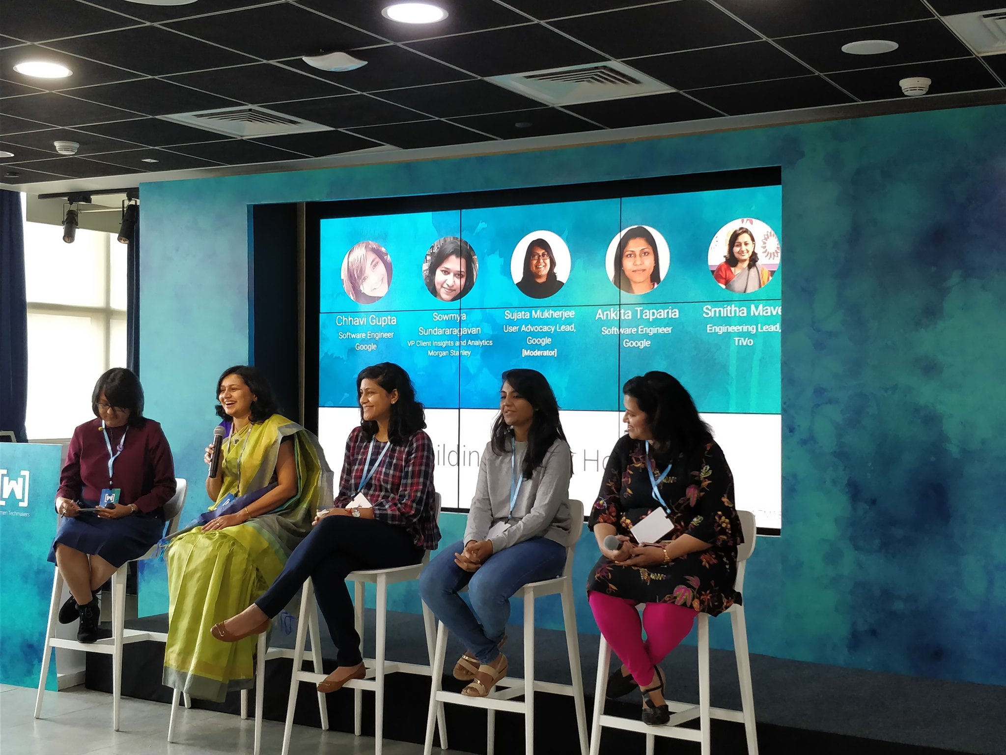 Sunita Mohanty who is the Director of Trust and Safety team at Google started the Summit with the keynote speech. Before talking about the gender gap that exists in technology, she shared her own story and journey, her story of being a daughter, a mother and a woman in technology. She urged the audience to not try and fit in. It’s important to be your own self. She also spoke about how it’s sometimes very important to do some unlearning. Being a woman brings in the burden and pressure of many social norms. Some of them should be left behind so as to push yourself ahead. It’s very important to figure out what you are good at and put your efforts. She went through some numbers that tell us how much the number of women keeps decreasing as the roles go higher and I liked how she concluded it. She said it’s not just about having a 50/50 gender representation of men and women. Whatever the number is in our community, it’s more about supporting each other and helping others grow along with us.