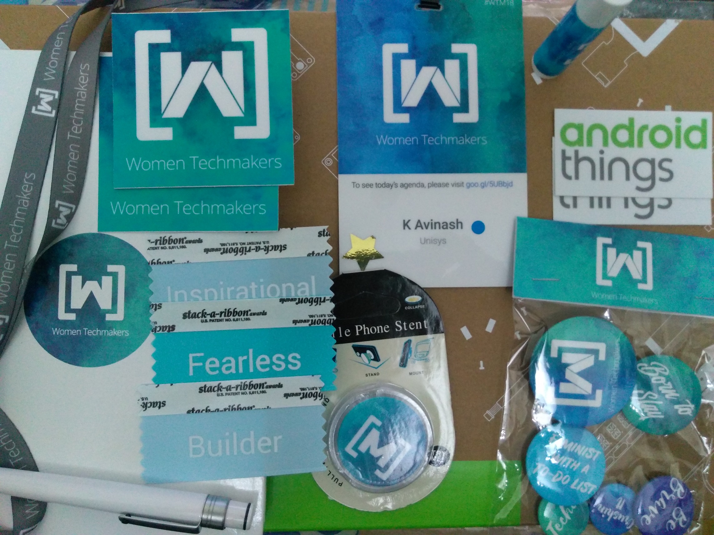 The place looked lively with nice ambience. There was a warm welcome at the registration where we got the access cards. Besides the talks from speakers, there were two sessions that were planned to happen in the afternoon. One of them was on Android Things and the other was Speechless Workshop which was about public speaking. I registered for AndroidThings. As I was about to leave the registration desk I was asked if I got my swag bag. Since I didn’t, I said no and then I got one! Want to take a look at what all I got?