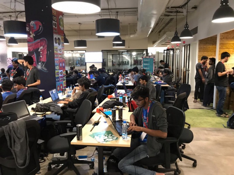 Hackathon started on Saturday morning(it had some tech talks in the evening of the day before) and I could see excited faces all around — thanks to InOut’s welcome bag of swags. While it is open for everybody, most of the participants were college going students and it was quite nice to see them come up with some very good and interesting ideas. Though the hackathon had some topics of interest like Blockchain, AI, IoT, Health etc, the participants were free to build and work on any idea they had. The starting hours of Saturday morning had mixed scenes. While some of the participants were in groups, discussing their ideas and approaches to build, some already started to work(or to code!).