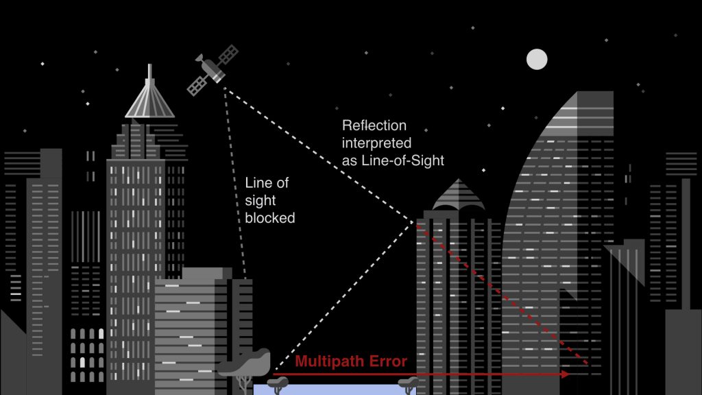 In urban areas or places with high buildings, the satellite signals can get obstructed before directly reaching the GPS receivers. This happens if any high buildings are in the line of sight to satellites. To quickly sum it up, GPS uses many satellites(30 or more) that revolve around Earth’s orbit and transmit signals that are used by GPS receivers for location identification. These signals can be blocked or reflected by the buildings that exist in their way of propagation. And when this happens, it causes an error in location information. This error varies from a few metres to 50m or more. The above image is one such example.