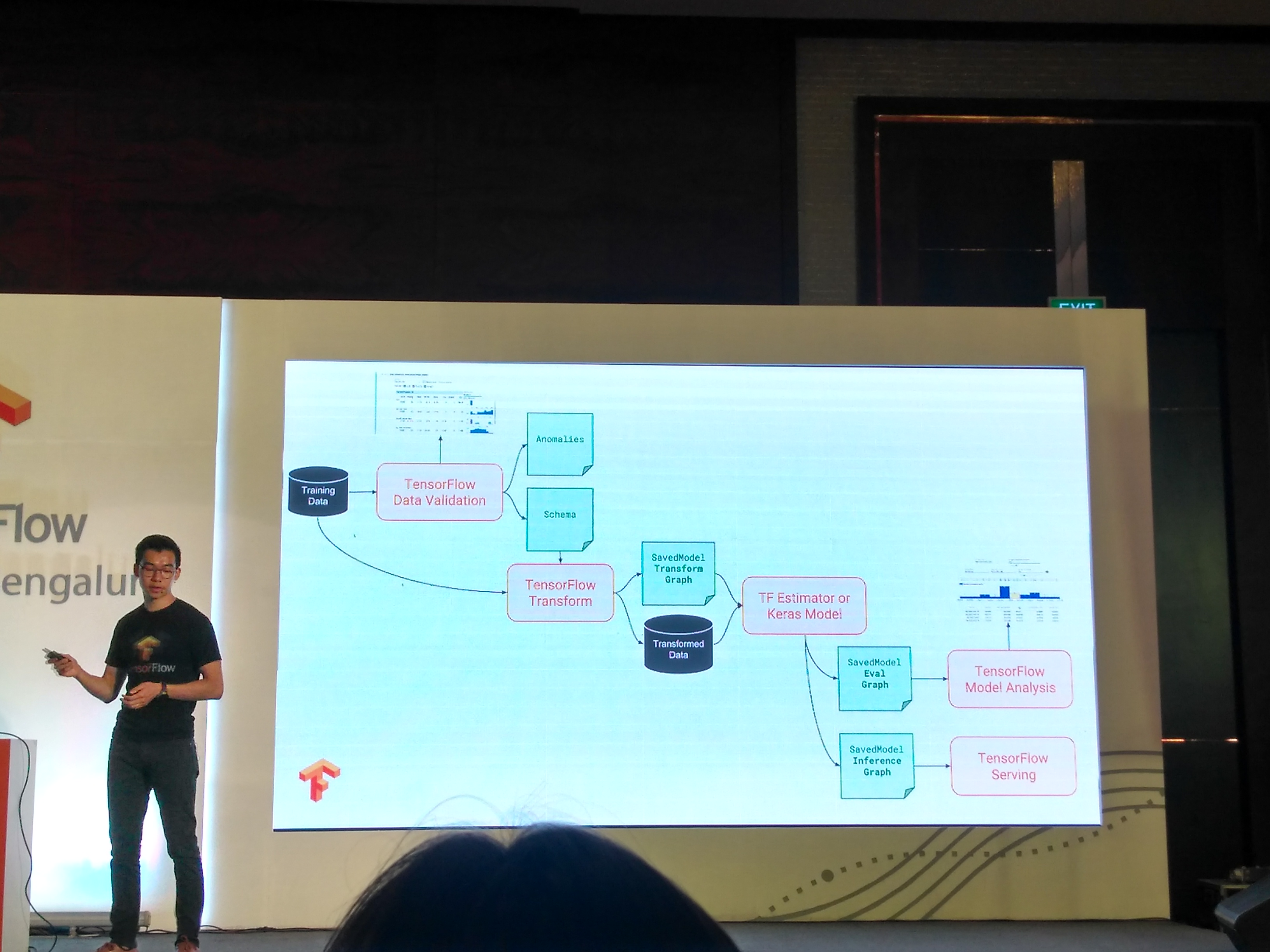 When building Machine Learning models, there are many things to consider and worry about than just the code. Collecting the data, making it ready for model training is a time taking process. Since the model performance and accuracy is highly dependant on the data used for training, it makes data validation and transformation highly critical. While on a high-level, a Machine Learning model takes data and learns from it to output a trained model that can be used for inference, taking this for production involves a lot of constraints and requirements. Instead of focusing only on building and deploying models, TensorFlow is growing its support for other parts of Machine Learning pipeline and TensorFlow Extended (TFX) does exactly that. Kenny Song explained through a series of slides what TFX is and what it does. TFX is an end to end ML platform that provides libraries to validate and analyze data at different stages of the training and serving, analyse the training model over different slices of data etc. He also talked about TF Hub which is a repository for reusable Machine Learning modules. Modules contain the TF graph along with its learned weights trained for some specific task. These modules can be used as is for the same task or can be reused with some modifications to solve similar other tasks.