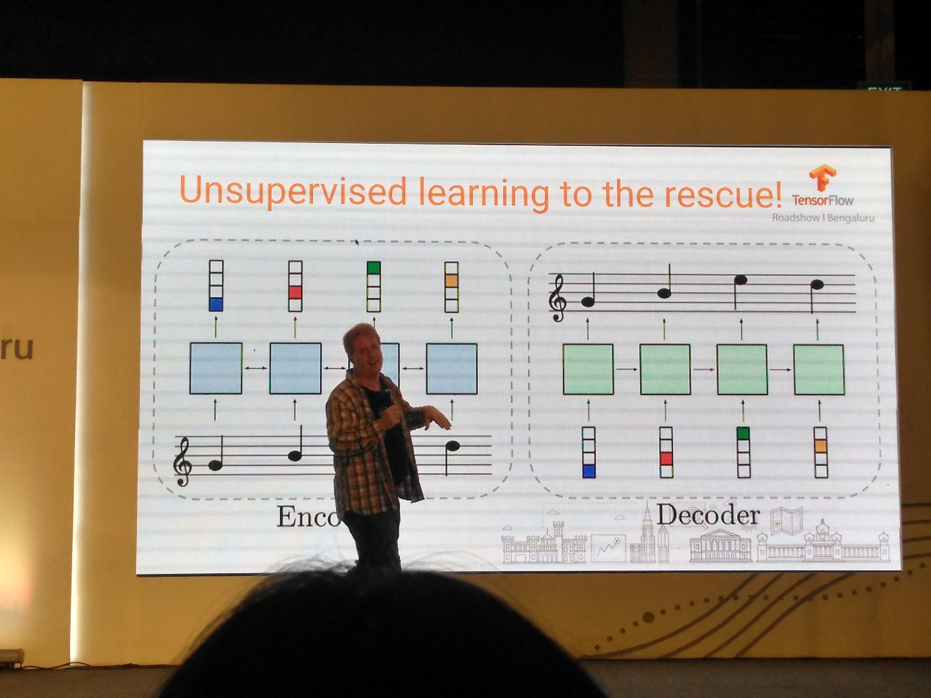 With ML finding its place in almost every field, artists too have taken a plunge into it. Using ML to come up with some form of art has become a growing interest. ML is being used to come up with its own paintings, writings, music etc. Magenta is a TensorFlow project that is used for generating art and music using Machine Learning. It was Wolff Dobson who took the stage once again, for the last talk of what happened to be an amazing day. He showed us demos of some of the applications built using TensorFlow that play music and games.
